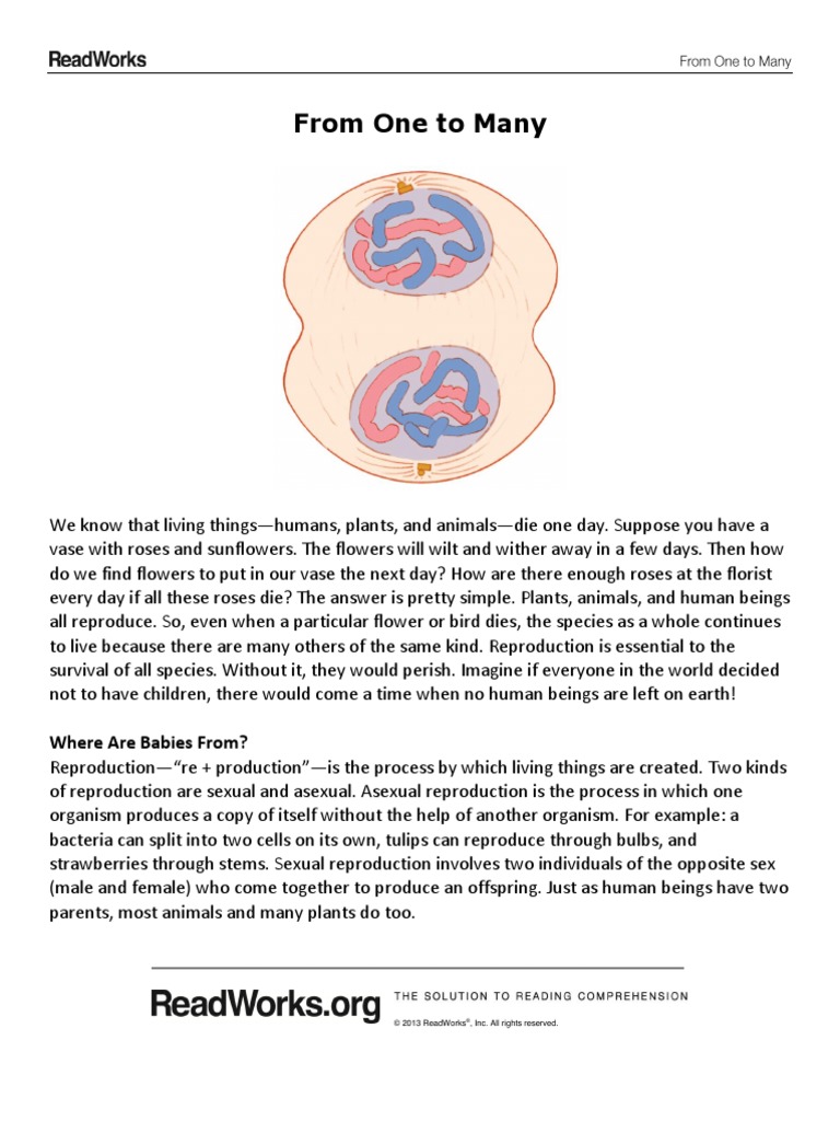 Readworks From One To Many Pdf Reproduction Sexual Reproduction