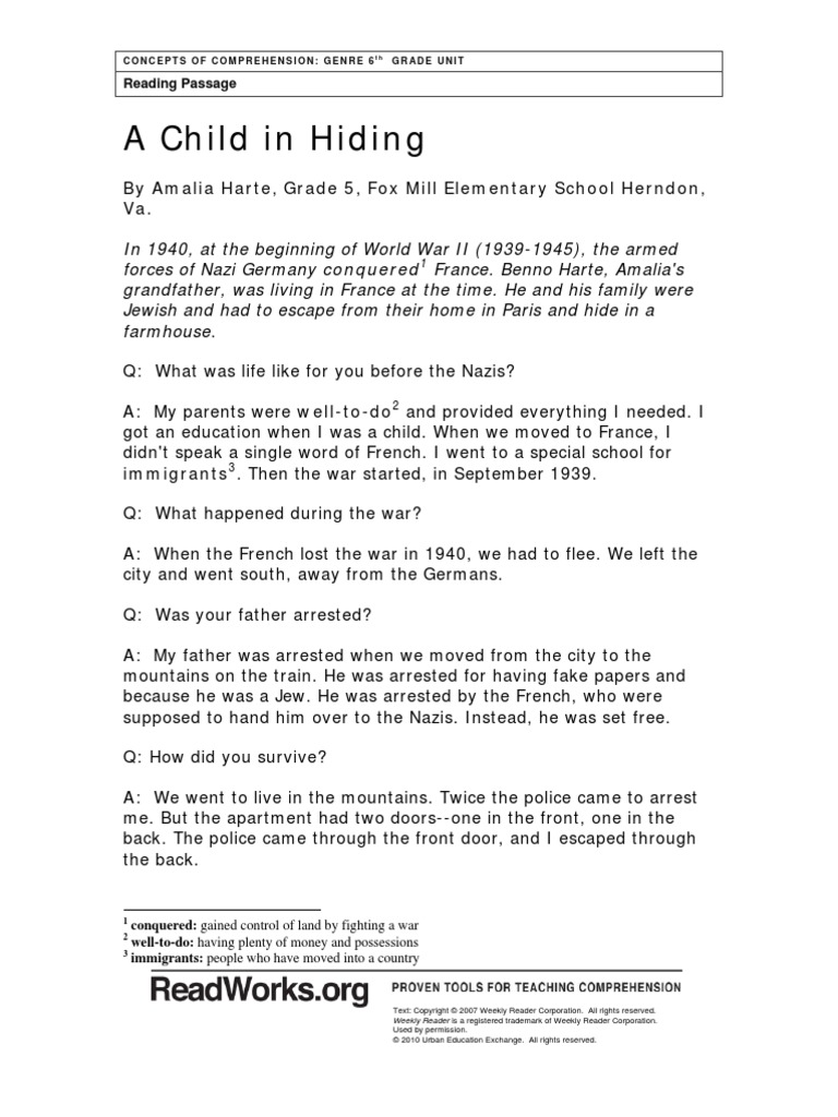 A Child In Hiding Readworks Pdf Nazi Germany Racial Antisemitism